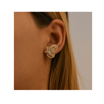 Women's Luxury Double butterfly Hollow Design Zirconia Gold-plated Earrings Simple Fashion butterfly Earring for Valentine's Day