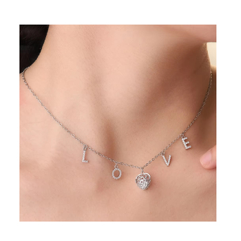 2025 New Wholesale Silver Plated Stainless Steel Love Zirconia Pendant Romantic Valentine's Day Love Necklace Letter Necklace